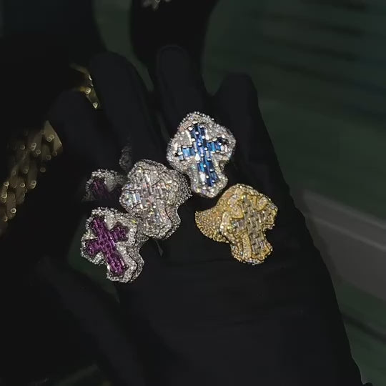 Make a bold statement with our Iced Out Moissanite Ring, featuring a striking Blue Cross design accented with pink details. Crafted from premium 925 sterling silver and fully encrusted with VVS moissanite stones, this ring shines with unmatched brilliance and passes diamond testers — delivering the look of real diamonds without the steep price.